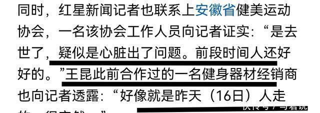 引言       2025年还剩下最后�天,可是再过去񊄫天时间里面,各界都传来了噩耗;       񀙝位不幸的消息,令网友觉得非常惋惜!       其中,最大的年�岁,最小的�岁,甚至在去世前的几个小时,还被人偶遇;       演员何晴去世!       12�日,娱乐圈传来一个噩耗,被网友称之为“第一古典美人”的何晴,因病在北京去世,享�岁。       家人第一时间在社媒上发布讣告,确定消息真实性之后,全网一片哗然;       作为无数人童年的记忆,何晴所饰演的角色深入人心;       随着消息曝光,更多内幕也被揭开;       实际上,自从何晴因身体原因半隐退之后,一直就很少在公共场所露面;       �年来一直收到疾病的困扰,原本经过治疗,病情得到了控制;       可是谁也没料到,在前两年病情突然复发,并且恶化;       最终��日不幸离世!       12�日,许多粉丝自发前往殡仪馆送行;       从离世到葬礼的举行,仅𱎵天时间而已;       虽然何晴走了,但是她的作品会被一直流传下去;       健美教练王昆去世!       提起王昆,所有人都觉得非常可惜!       因为他�岁,作为一名健美冠军,王昆的故事绝对算是非常励志;       自从读大学开始,在很多学生迷茫的时候,他就已经确定了自己的人生目标——成为一名健身教练;       从那之后,真正做到了十年磨一剑;       从一个爱好健身的普通人,变成了健美全国冠军。       但是所有人都意料不到,等待自己的是意外还是明天。       12�日晚,许多健美圈好友发文悼念,称王昆因病已经离开了;       12�日,各大媒体证实了这个消息,并且从安徽健美协会工作人员口中得知:       王昆去世的原因是因为突发心脏病,前段时间还是好好的;       根据好友透露:       王昆是因为患甲流,休息了几天,但是怕耽误了训练,刚恢复不久,就开始锻炼;       导致甲流演变成了心肌炎,不幸离世;       有网友甚至在王昆去世当晚,还在健身馆偶遇到了他;       在健美圈子里,很多人都称他为“苦行僧”,因为他对自己太苛刻了;       尤其是在训练方面,几乎每天都会去训练;       除此之外,他还经营了好几家线下门店,几乎所有的事情都是亲力亲为;       常年透支身体,加上过度熬夜,即使再好的身体,也吃不消;       最终,��日深夜,王昆就永远离开了。。       王昆的去世,给很多健美人提了一个醒,所有的荣誉,都应该在身体健康条件下去争取;       否则一切都是浮云……       吴佩芳去世!       12�日,上海市徐汇区建襄小学发布讣告:       学校创始人之一,名誉校长吴佩芳因病去世,终�岁;       提起吴佩芳,或许很多人并不知道,但是很多人都看过一部沪剧,名叫《鸡毛飞上天》;       吴佩芳就是《鸡毛飞上天》里面的原型人物。       她甚至没有正儿八经上过学,但是就是这样一个人,后面竟然成立起来了,一所上海徐汇区有名的公办学校;       吴佩芳是江苏人,丈夫是上海人,于是吴佩芳也去到了上海生活。       报名参加了校委会的妇女识字班,也就是在这里学习了几天识字的机会;       1958年,因为公共教育场所不足,许多孩子都没地方上学;       当时吴佩芳咬咬牙,和另外两个姐妹筹够�元钱,创办了一所“弄堂学校”;       而这所小学就是现如今的建襄小学;       看见自己所成立的学校,能够有今天的成绩,相信吴佩芳也非常的放心。       希望吴佩芳校长一路走好!       写到最后       看着一个个噩耗传来,心里五味杂陈,希望所有人能够爱惜身体;       身体才是最应该投资的东西,因为有了身体,一切都会有的……